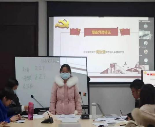 最后是讨论表决刘鹏、窦肖宇、李函语、宋恺梦、叶香君、杨倩、赵玲以及魏晓炜等八名发展对象转为预备党员的议程,由宋佳芮同志主持。经过各发展对象自我陈述、入党介绍人介绍情况、无记名投票和唱票等环节,一致同意接受八位发展对象成为预备党员。全体党员对新加入支部的同志,表达了热烈的欢迎和祝贺,八位同志也表明了今后继续努力、早日成为中国共产党正式党员的决心。