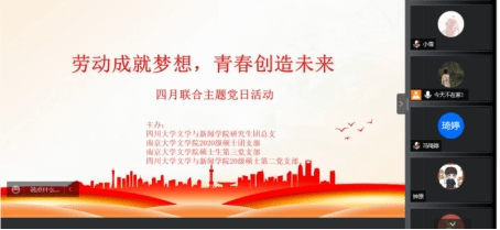 为庆祝五一国际劳动节,引导青年学生崇尚劳动、尊重劳动、辛勤劳动、诚实劳动、创造性劳动,学习以实干兴邦的劳动精神,2022年4月28日,滚球app官网研究生团总支、2020级硕士第二党支部联合南京大学文学院硕士生第三党支部、南京大学文学院2020级硕士团支部开展“劳动成就梦想,青春创造未来”的主题党日活动。