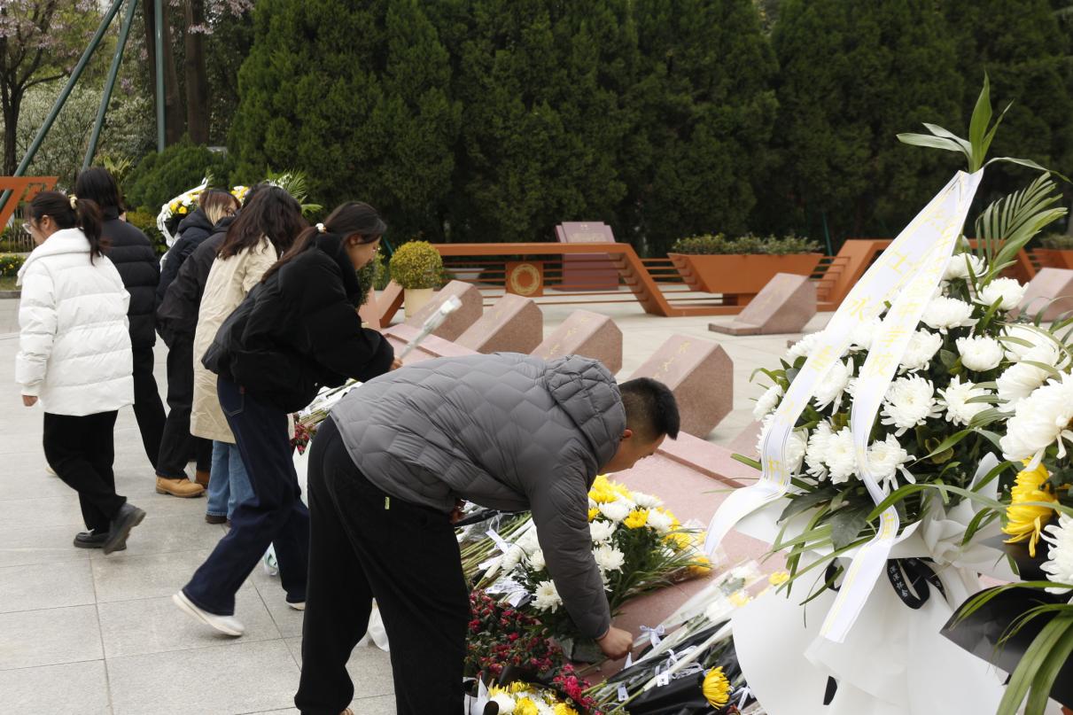 时临清明,为深切缅怀革命先烈,追寻先烈足迹,弘扬爱国主义精神,2025年3月29日,滚球app官网2023级硕士党支部、2024级硕士第三党支部、2024级本科党支部的党员代表前往十二桥烈士陵园联合开展“锦绣红韵映初心 英烈精神砺新程”祭奠革命英烈的活动。