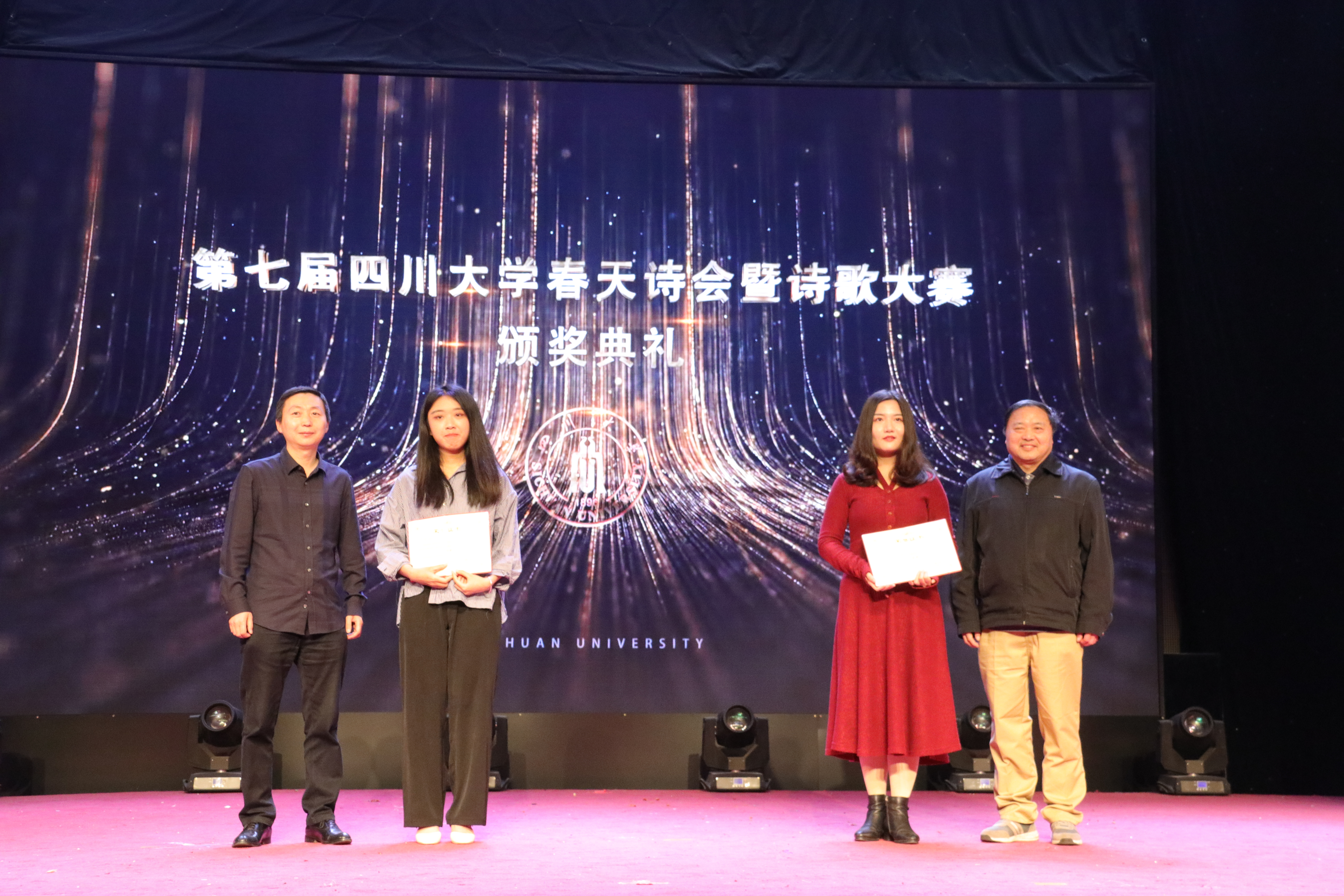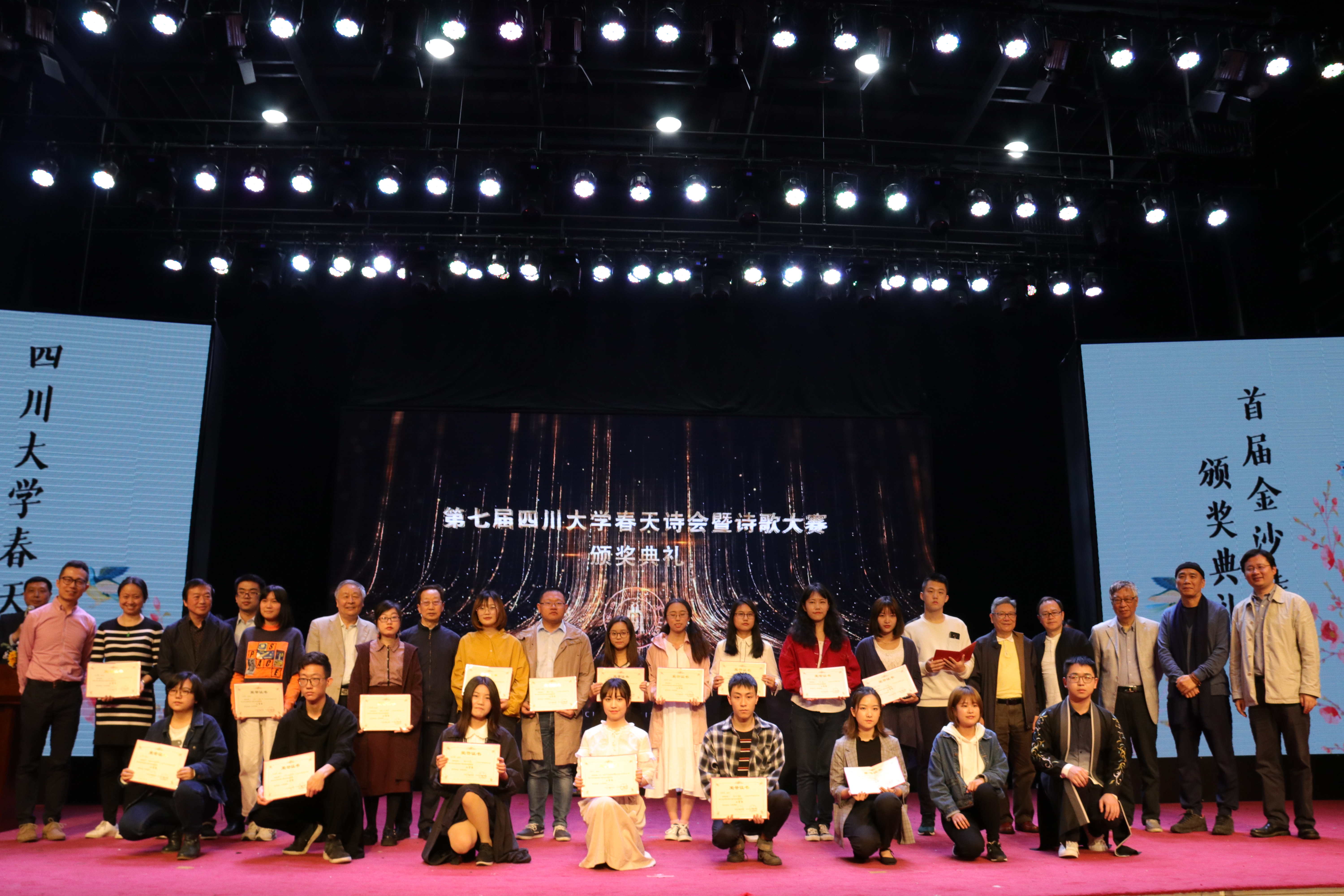 据悉,本次大赛成立了由作家、学者组成的评审专家委员会,经初评和终审,最终评选出一等奖2个、二等奖6个、三等奖12个以及50个优秀奖,共70个获奖作品。这些作品既有对祖国和“五四”精神的歌颂,也有对春天、美好生活与青春的赞美,反映了同学对诗歌创作的极大热情,展现了川大学子的青春风貌。自2011年以来,滚球app官网春天诗会已连续举办七届,旨在推动校园文学创作,提升诗歌写作能力,陶冶学生审美情趣,丰富校园文化生活。