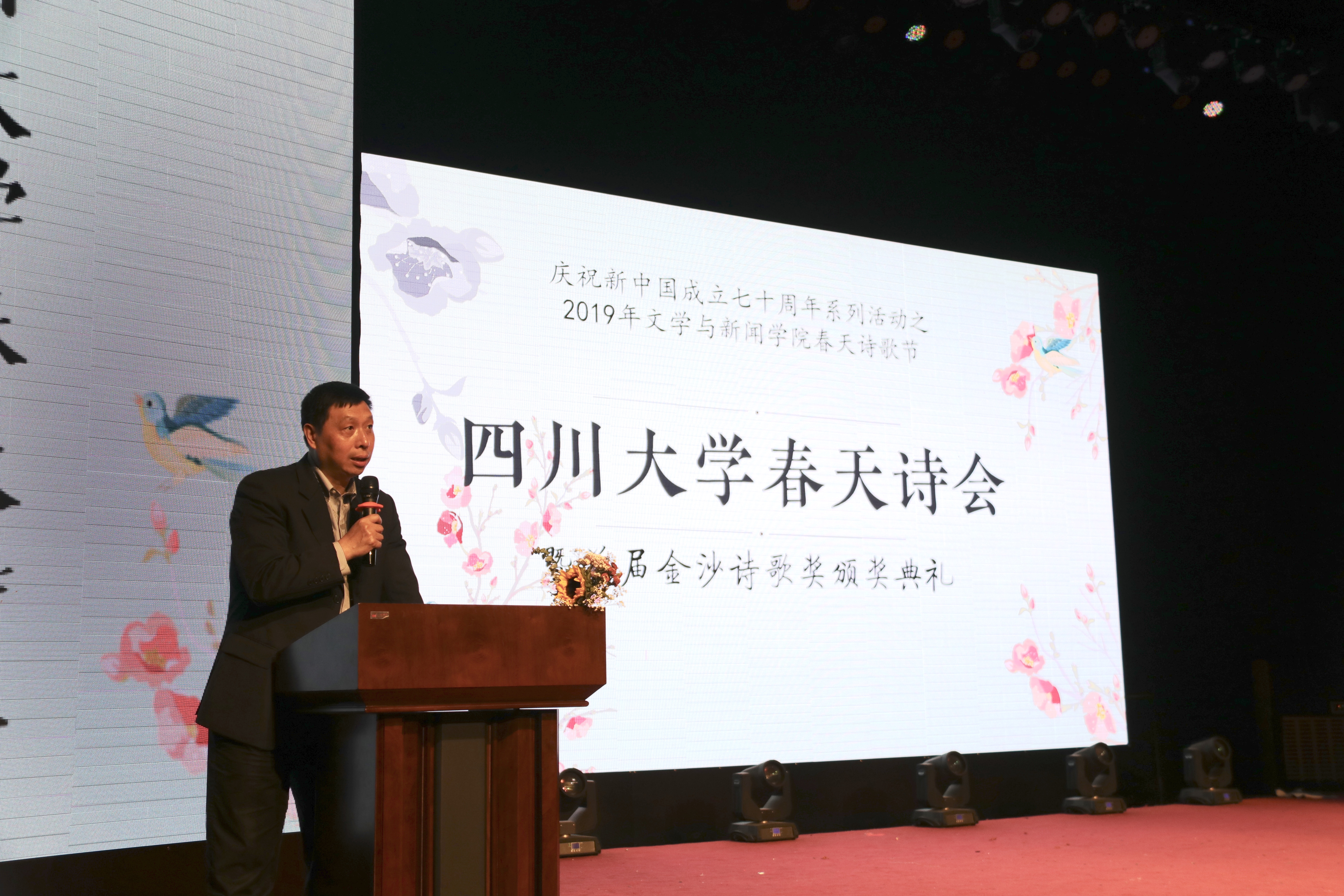 4月13日下午,滚球app官网春天诗会暨首届金沙诗歌奖颁奖典礼在江安校区滚球的十大平台演播厅举行。滚球app官网副校长晏世经教授,校党办、宣传部、关工委、学生工作部、团委等部处代表以及中国作家协会、四川省作家协会、成都市作家协会代表与诗人出席颁奖典礼。诗会与颁奖典礼由滚球的十大平台党委书记古立峰教授主持。