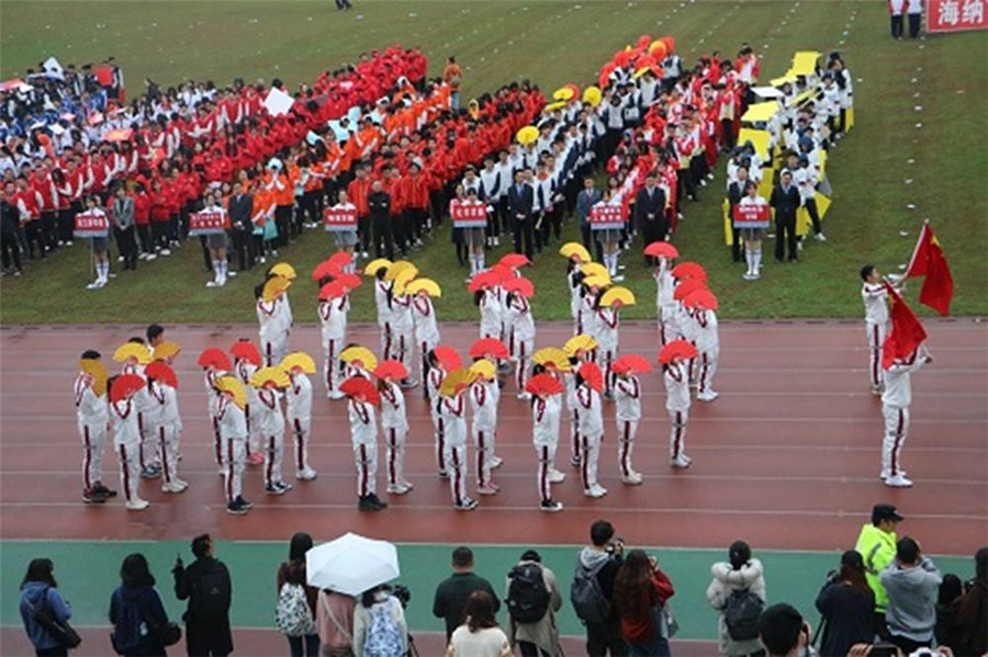 开幕式上,红旗队护卫着国旗、校旗、校徽,以及“海纳百川、有容乃大”的校训展牌和“严谨 勤奋 求是 创新”的校风展牌入场。随后,来自各学院的35个代表方阵依次进入运动场。滚球app官网代表团师生昂首挺胸、精神饱满,他们步伐整齐、口号嘹亮——“壮志文新,砥砺前行,热血激荡,青春飞扬”,手持国旗和印有学院标志的表演折扇步入会场,展示了积极向上的的精神风貌。据悉,滚球app官网参加表演方阵的有2位老师和48名学生,有80名学生报名参加29个项目的比赛。方阵入场毕,在隆重庄严的升旗仪式中,2019年滚球app官网学生运动会拉开序幕。