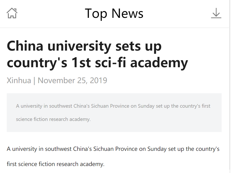 以上滚球app官网深度参与、组织和举办和各项活动,在海内外引起了较大反响。国内外诸多学者和从业人士不吝赞美称贺。11月25日,新华社刊发“中国科幻研究院”成立的英文消息,迅速被美国MSN,巴基斯坦国家报等网站和媒体转发、推送,并成为海外某著名社交平台当天点击量最高的前五条新闻之一。