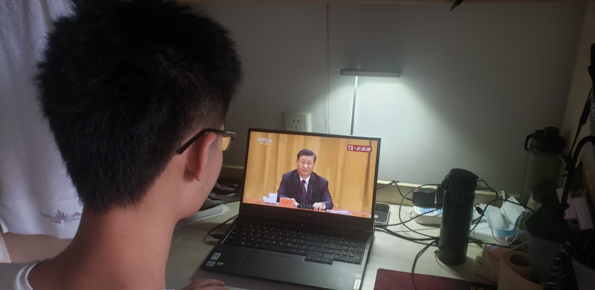 叶傲林同学认真观看直播