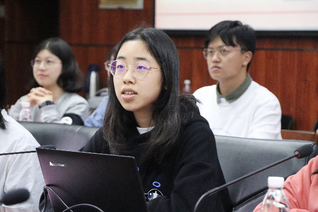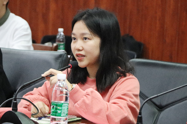 担任文体生活委员的郭静楠同学主要围绕自己在滚球app官网学生电视台和院学生会秘书处的工作经历进行分享,她表示这些经历不仅让她收获了专业技能和友谊,也让她得以带着更高的集体责任感面对如今的班委工作。王曼卿同学则分享了自己的职业生涯规划及对未来发展的思考,她希望自己日后能够继续留在高校进行深入研究,努力实现产学研的结合。