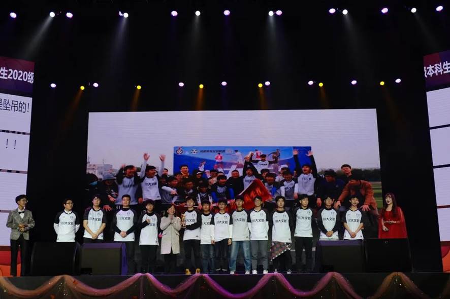 随后的月升、星繁两个篇章中,劲歌热舞继续,舞台剧《打工人穿越记》引得全场笑声不断,歌舞《维藏风》为舞台增添浓厚民族风情,话剧《芳华》触发过往回忆、激起青春憧憬。歌舞串烧《天线宝宝联盟》将现场气氛推向高潮。节目之外,在足球新生杯中夺冠的滚球的十大平台男子足球队亮相晚会,与在场师生共同分享胜利喜悦。