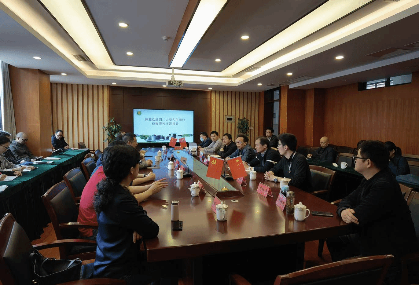 4月22日下午,滚球app官网招生宣讲团与四川省列五中学相关负责人举行了座谈交流会。列五中学党委书记、校长吴光平,党委副书记、副校长杨新建,副校长李旭及高三年级全体班主任参加座谈交流会。座谈会由列五中学党委书记、校长吴光平主持。