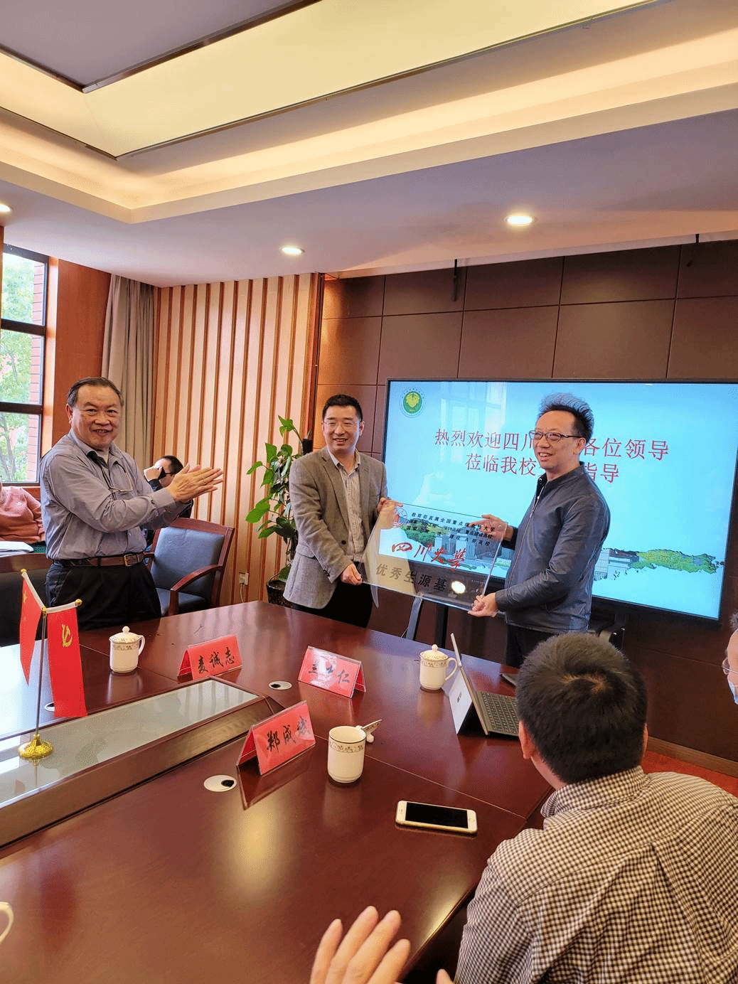 座谈会最后举行了优质生源基地的授牌仪式,廖爱民副主任代表学校向列五中学颁发了滚球app官网优质生源基地的基地的牌匾。