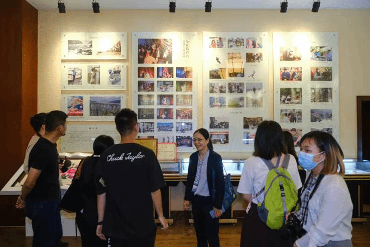 走进新华社四川分社社史陈列室,墙壁上从右至左依次展现了1950年至今新华社发展的八个阶段、部分分社记者工作剪影、分社营销工作、分社精彩的党群文体活动以及经典摄影等内容。新华社作为国家通讯社与我国重要的主流媒体,其海内外报道记录、见证着国家与社会的发展变迁,通过展柜中陈列的新华社旧时的采访本、手稿、泛黄的报纸、军绿色的工作马甲等,生动勾勒出时代进步的发展轨迹,是党史学习的新闻素材和珍贵资料。看着这些陈列品,参访师生深受感染,从重大突发新闻的现场图片到重大民生民情的及时报道,新华社的“红色气质”在贯彻与践行“讲好中国故事”中构筑,如滚球app官网研究生办公室党员老师刘郝霞所言,“在这些重大参与和获奖报道的背后,我感受到的是新闻的力量和正确的舆论引导的积极作用”。
