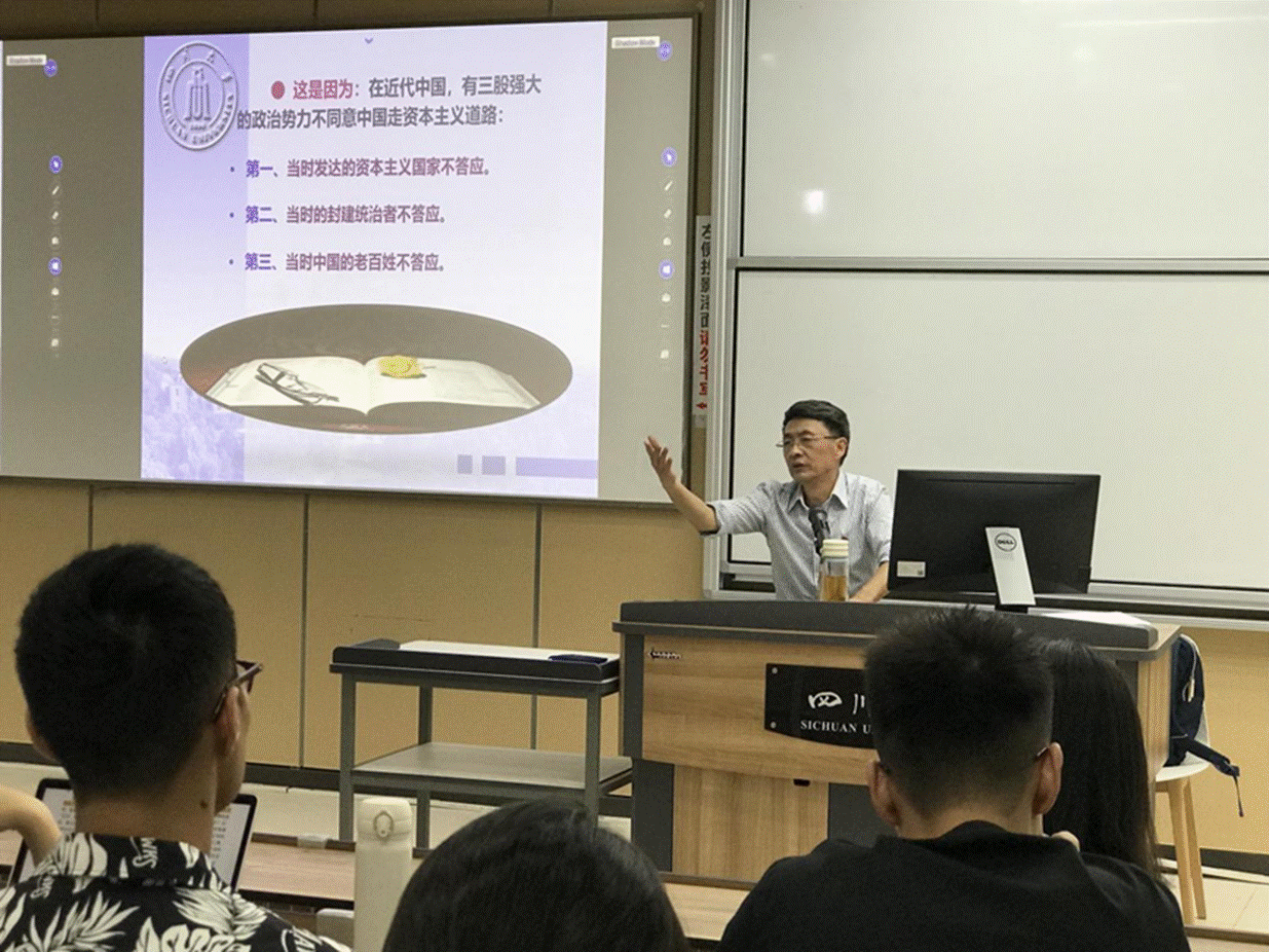 张诚教授首先以习总书记论中国共产党历史的重要论述为指引,结合生动鲜活的史实,宣讲了中国共产党领导人民进行新民主主义革命、社会主义革命和建设、改革开放和奋进新时代等四个历史时期的光辉奋斗历程以及百年历程的主题主线、主流本质和彪炳史册的伟大历史贡献。