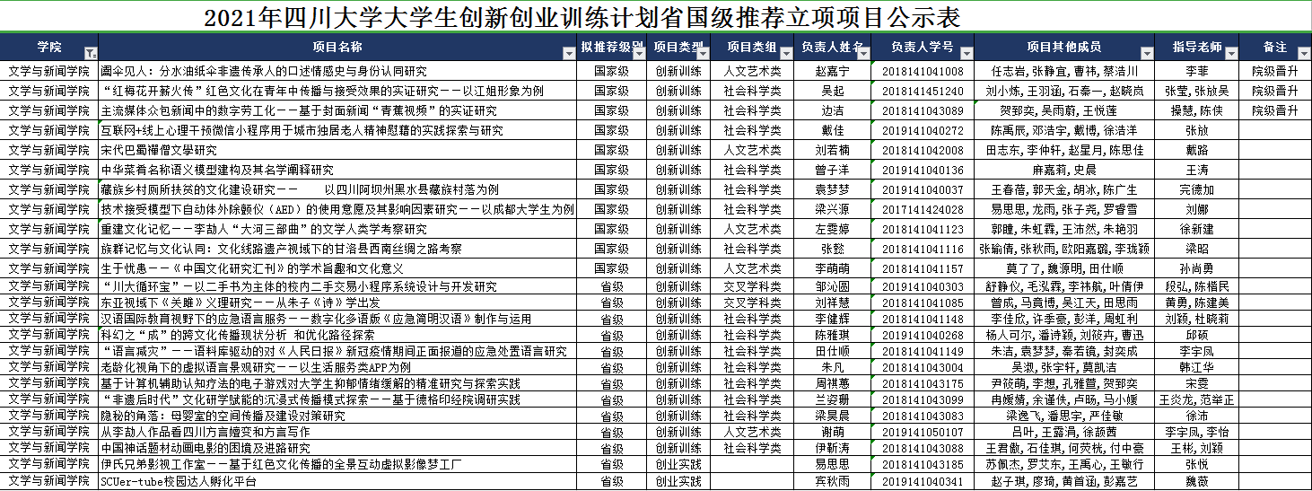 根据《国家级大学生创新创业训练计划管理办法》(教高函[2019]13号)、《教育部高等教育司关于报送2021年国家级大学生创新创业训练计划立项项目的通知》和《四川省教育厅办公室关于开展2021年省级大学生创新创业训练计划立项工作的通知》,滚球app官网于四月份启动2021年大创中期检查和省国级推荐立项项目评审工作。
