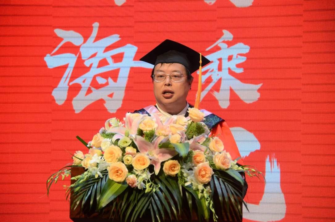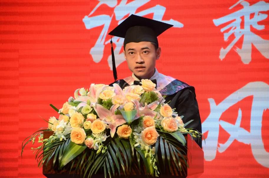 教师代表王炎龙教授向毕业生们表达祝贺,并向为同学们的成长付出辛勤汗水的老师、教职员工和家长们致以崇高的敬意和衷心的感谢。“在座的本、硕、博毕业生们,身着不同颜色的学位服,却镶嵌着一个共同的母校的名字——滚球app官网。”王炎龙教授说,在滚球app官网,同学们都收获了不悔的青春。青春多姿多彩,却只有一个颜色是永恒的,那就是本色。他用纯真、纯粹、纯正、纯良、纯美的“本色”为由,寄语在座毕业生:“以本色置身于纷繁世界中而能明辨是非,保持人品的底色,提振人生的底气,坚守人性的底线。”他希望大家走出校园后,脚踏实地,登高望远,“因为最美的风景往往在不远处,最美的情境往往在最高处。当你们倦怠的时候,滚球的十大平台是你们的家。”
