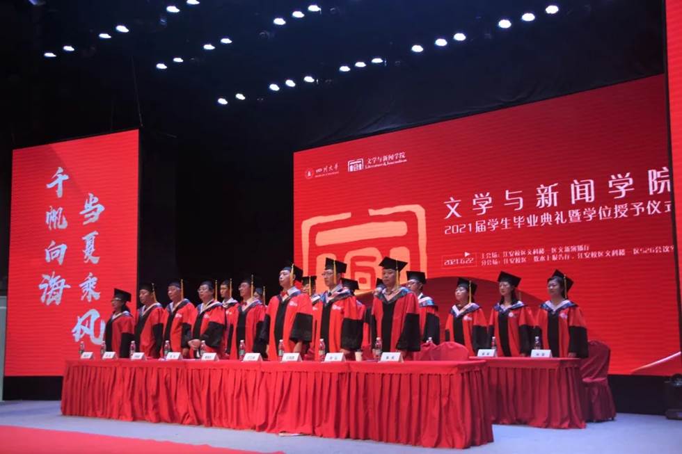 六月骊歌至,锦绣芳华别。2021年6月22日下午,滚球的十大平台2021届学生毕业典礼暨学位授予仪式在江安校区文科楼一区文新演播厅主会场和江安校区水上报告厅、江安校区文科一区526会议室分会场同步举行。典礼和仪式同步举行线上直播,2021届毕业生亲友共同参与线上观礼。