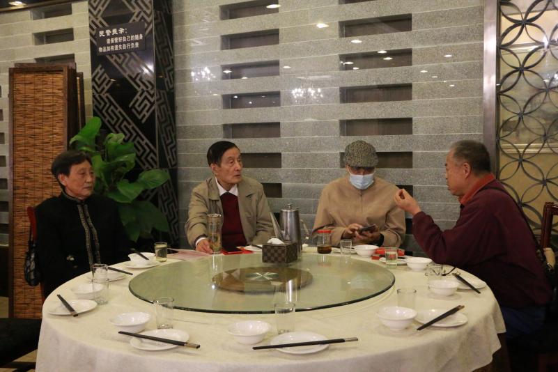 这是2020年新冠疫情后,老教师们在重阳节的第一次聚会,大家个个笑容满面、情绪饱满。学院工会主席、院关工委副主任罗梅老师和院长助理梁小梅老师在现场忙前忙后,热情慰问并照顾在场的离退休教师。本次重阳节活动共有50余位退休教师参加,其中不乏许多已步入耄耋之年的老教师。原中文系的卢延权老师已有91岁高龄,他在家人的陪同下前来参加本次聚会,卢老师平时很少出门,但只要是与昔日同事重聚的活动他都会尽量参与。虽然卢老师平时不使用手机上网,但他会通过与在校老师保持联系来了解学院的动态,他表示很高兴能参加此次活动。