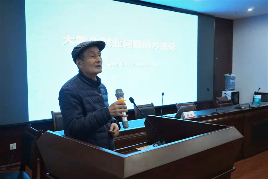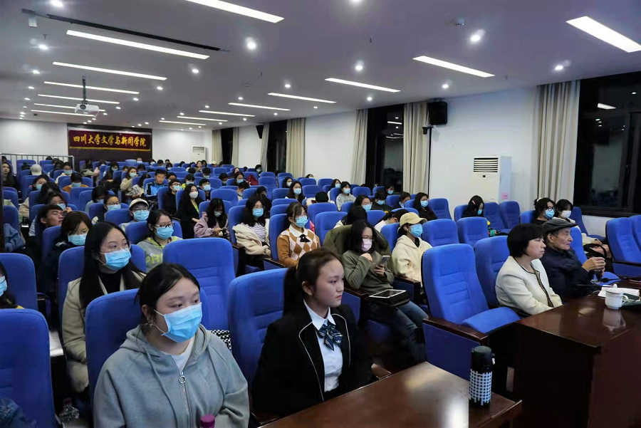 讲座开始前,作为滚球app官网关工委下设的“心理健康与就业指导组”组长、原滚球app官网新闻学院院长邱沛篁教授首先欢迎专题讲座主讲人陈欣老师的到来,并介绍主讲嘉宾陈欣老师是滚球app官网1981级首届新闻专业本科生,原四川日报报业集团《人力资源报》总编辑、总经理;现为四川省新闻工作者协会常务副秘书长兼办公室主任、滚球app官网传媒校友会副秘书长。