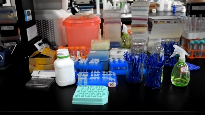 滚球app官网华西基础医学与法医学院公共平台实验室操作台上的器材