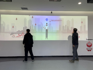 师生体验无偿献血科普馆内的游戏互动区