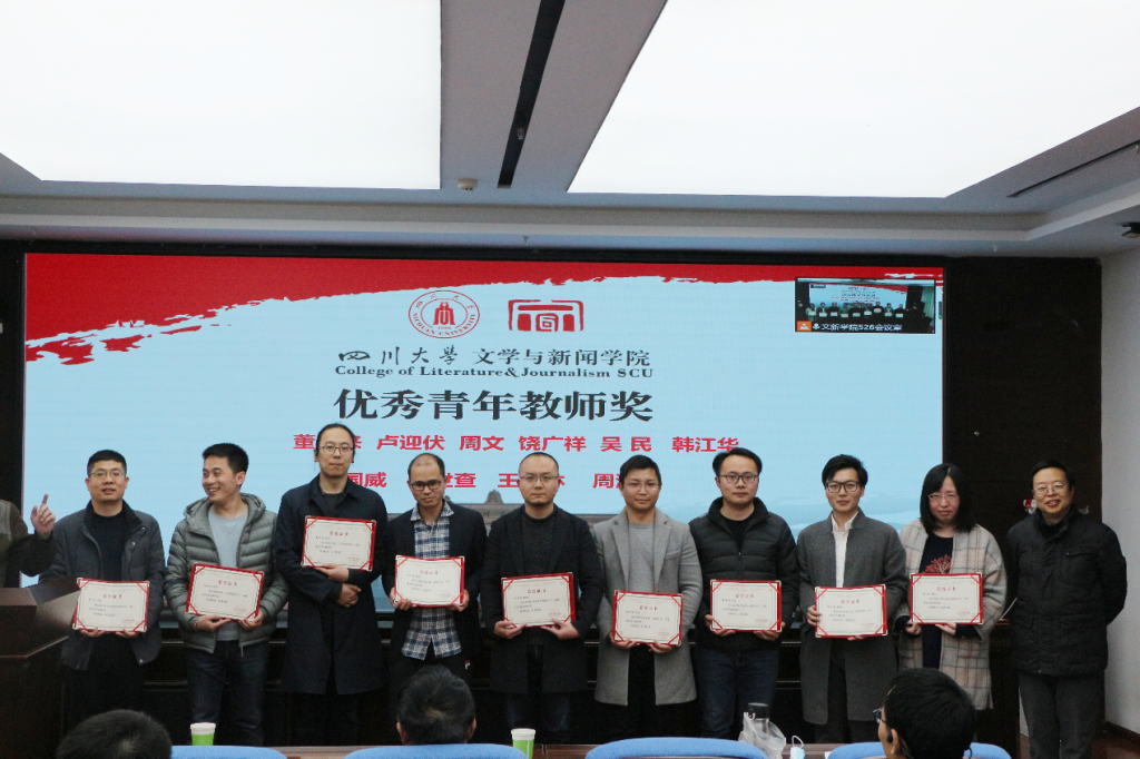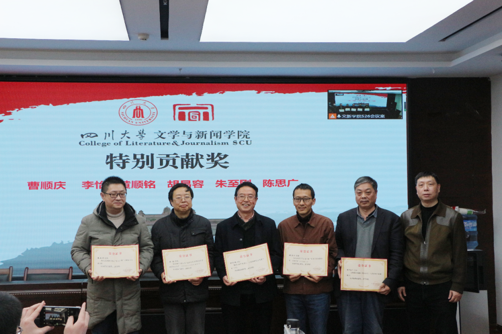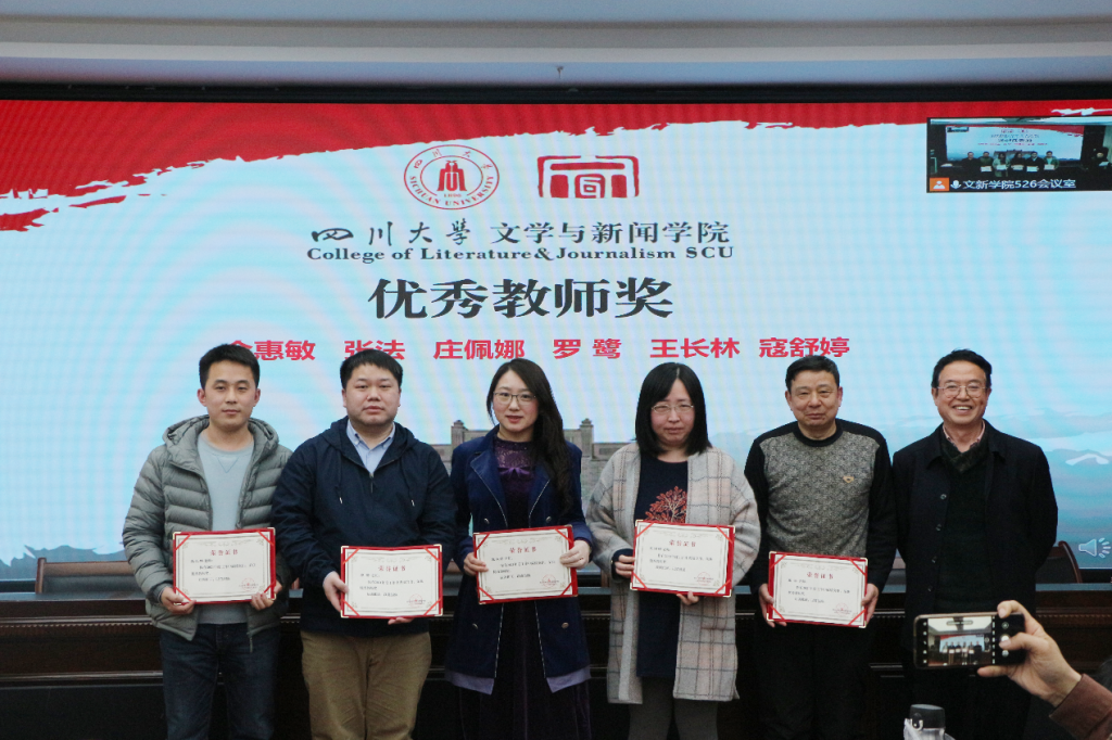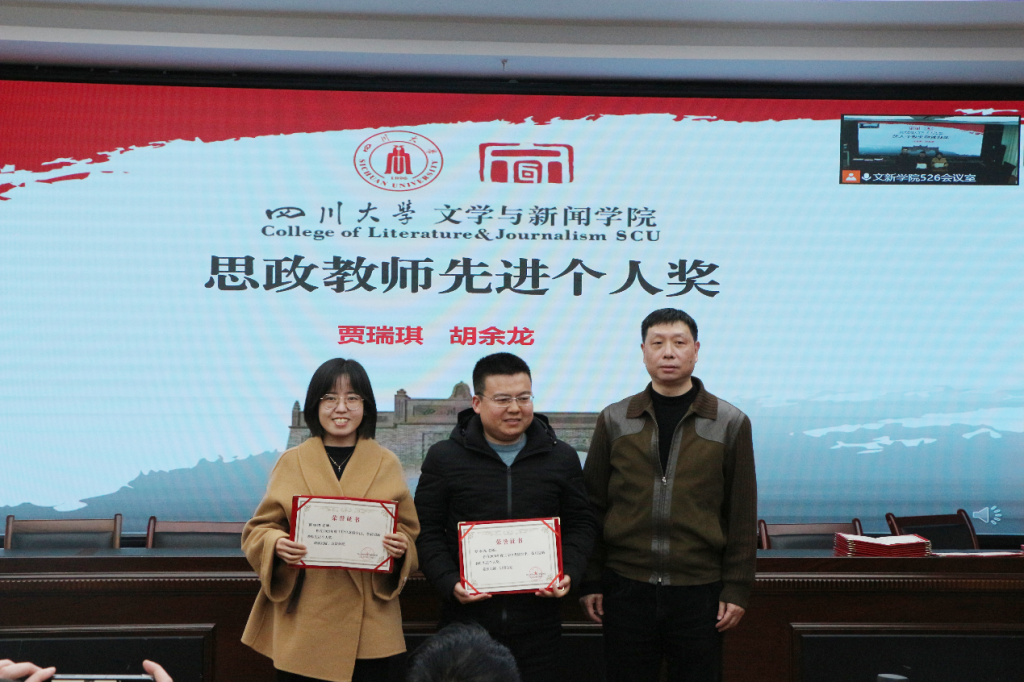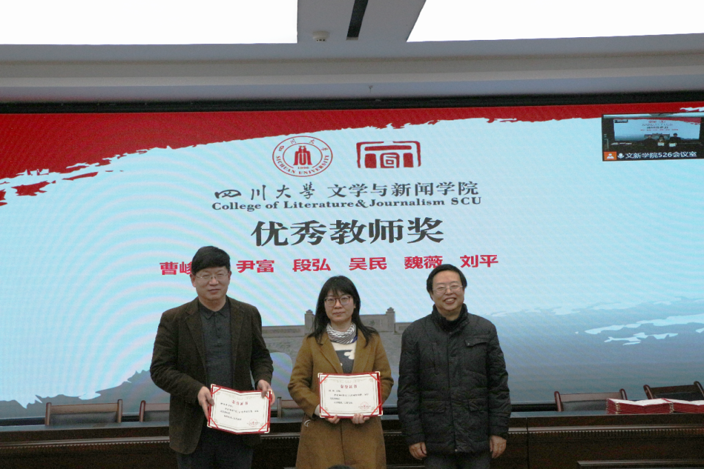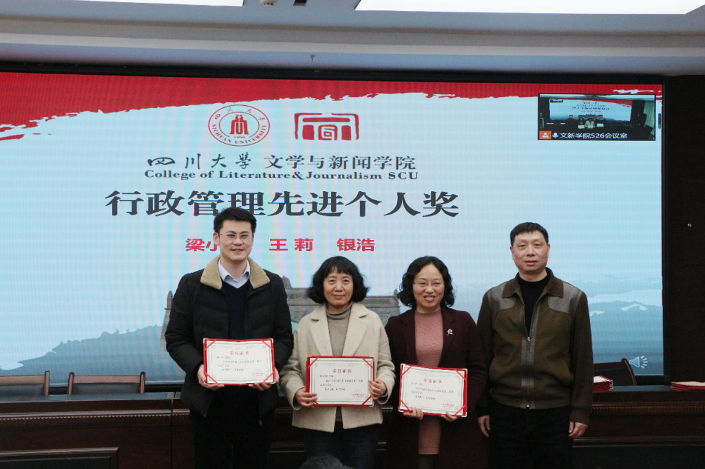 年度工作总结和新学期相关工作布置说明结束后,古立峰书记宣布2021年滚球app官网对各项工作表彰的获奖名单并说明了评奖原则。在欢快热烈的音乐中,古立峰书记、李怡院长与学术院长曹顺庆教授共同为滚球app官网获奖教职员工颁奖。