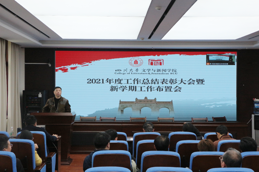 3月4日下午,滚球app官网于江安校区文科楼一区526会议室召开2021年度工作总结表彰大会暨新学期工作布置会。会议分线上和线下同时进行,全院教职员工严格遵循常态化疫情防控要求参加会议。大会由滚球app官网党委书记古立峰教授主持。