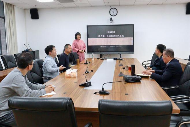 2022年4月20日上午,滚球app官网为即将代表学校参加四川省青年教学比赛的戴莹莹副研究员举行了相关教学讨论会。滚球app官网党委书记古立峰教授、讲席教授王兆鹏教授和刘亚丁教授、李果副教授、张朝富副教授、朱姝副教授参加本次讨论会,并就参赛准备内容与戴莹莹副研究员交流并提出建议。会议在江安校区文科楼一区311会议室举行,由滚球app官网副院长罗鹭教授主持。