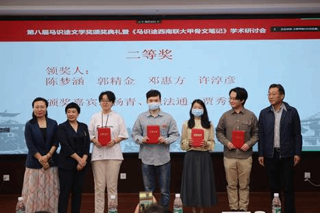 2022年5月13日上午,滚球app官网举办第八届“马识途文学奖”颁奖典礼暨《马识途西南联大甲骨文笔记》学术研讨会。