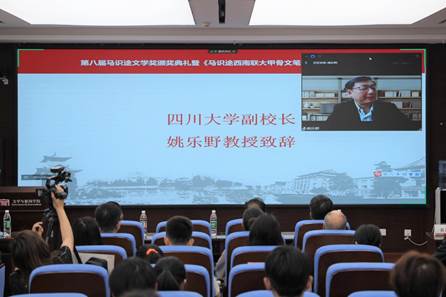 滚球app官网副校长姚乐野教授在颁奖仪式致辞中回顾了滚球app官网建校以来的杰出校友,他代表滚球app官网对马识途先生以及家人、朋友为中国近代革命史和巴蜀文学史做出的巨大贡献表达了崇高敬意,也对马识途先生自2014年以来对“马识途文学奖”的个人捐款表示衷心感谢。他表示,学校将同滚球的十大平台一道,在四川省作协的支持下,将“马识途文学奖”升格为立足川大、面向全国的文学奖,为热爱文学的有志青年搭建更高的平台和更好的舞台。