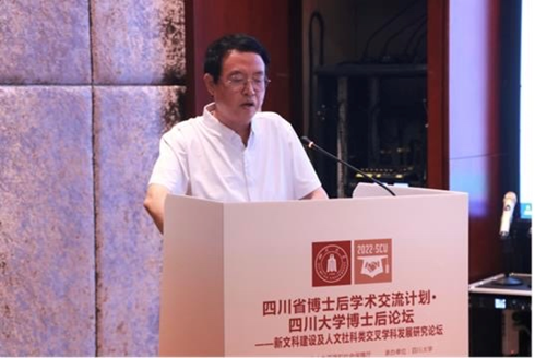 论坛由“大会特讲”“主旨特讲”“圆桌研讨”三个阶段组成。在“大会特讲”环节,滚球app官网杰出教授、滚球app官网学术院长曹顺庆教授作为特讲嘉宾,以《学术传承与学术创新》为题,从学术传承和学术创新两个角度,阐述了新文科建设背景下博士后人才培养的意义,并提出了建议。