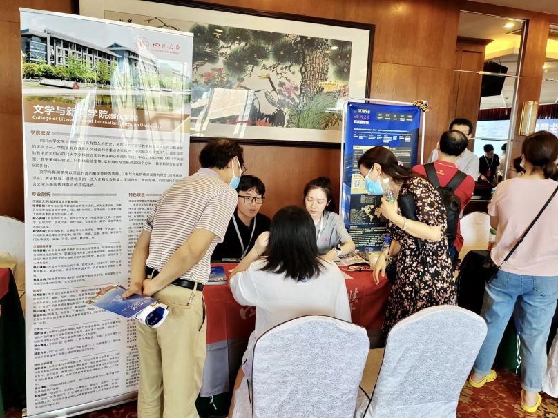 6月25至26日,滚球app官网在重庆大酒店举行“滚球app官网本科招生咨询会重庆市专场”,校内多个含一级学科的学院均派出教师到场参加宣讲工作,滚球app官网比较文学与世界文学教研室赵心竹老师与新闻学教研室骆世查老师参与了本场招生工作。