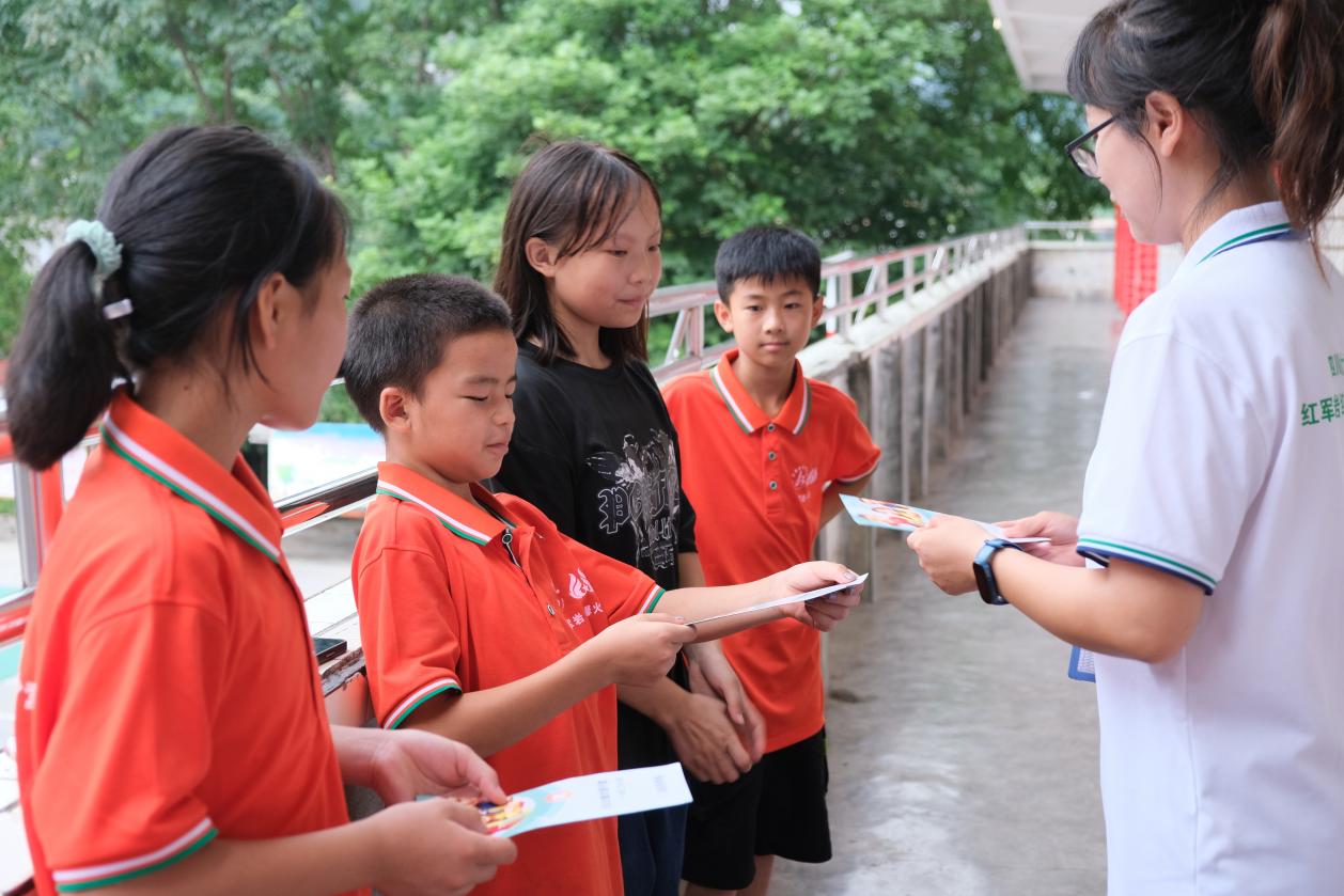 实践团向营员发放卫生宣传手册