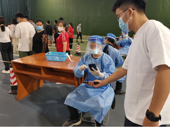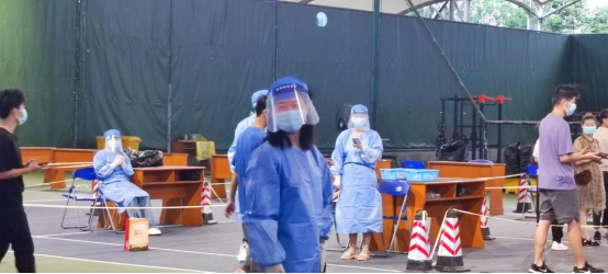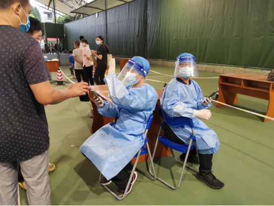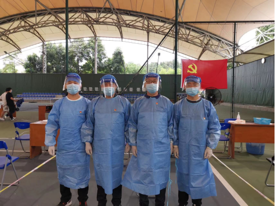 滚球app官网教师党员在江安校区网球场核酸检测点工作现场