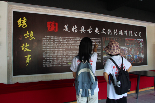 次日,同学们参观了社区的扶贫车间——美姑县第一刺绣艺术工作坊与北辰社区妇女居家灵活就业点。在广东佛山顺德的对口帮扶下,当地彝族绣娘融合广绣与彝绣的精髓,实现“家门口就业”,用自己的双手绣出小康生活。