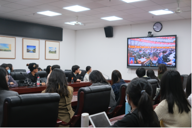 在学院集体收看学习的有:教研室主任代表,教师党支部书记代表,教师优秀党员代表,以及全体辅导员老师和部分学生代表。这些师生代表在江安校区文科楼一区311会议室、315会议室、418会议室、302党员活动室集中收听收看大会报告。其余同学则由班团组织自行收听收看大会报告。