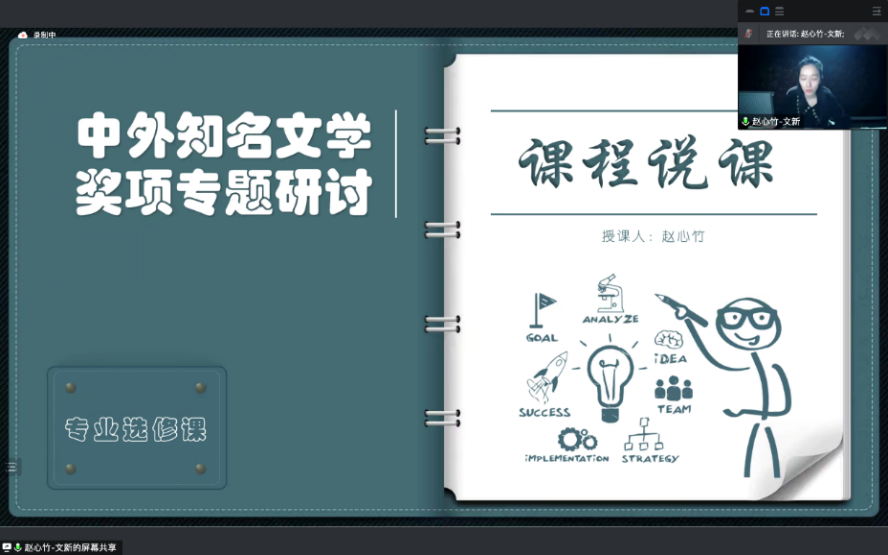 赵心竹老师以“中外知名文学奖项”为课程中心,通过解读2022年诺贝尔文学奖获得者安妮·埃尔诺,引导学生在中西方文化的交流中感知中西文化之间的差异,培养新型跨文化人才。各位评委老师充分肯定了赵老师的总体设计思路,并进一步对其在教学设想的深化拓展、授课重点的明确突出、课件风格的加工改进等层面提出了建议。