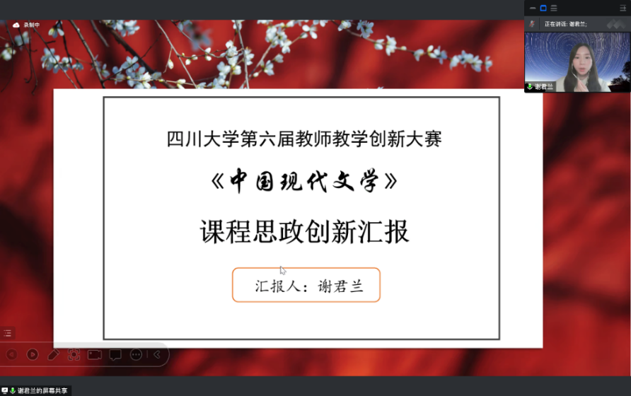 谢君兰老师在“大文学”视野下重构中国现代文学,将课程思政的育人要求巧妙融合进文学史中,立德树人的格局与专业知识的讲授形成了协同效应。各位评委老师高度评价了谢老师的创新教学思路,并在主题线索的明确、课程亮点的提炼、具体意象的解读等部分提出了具有价值的优化思路。