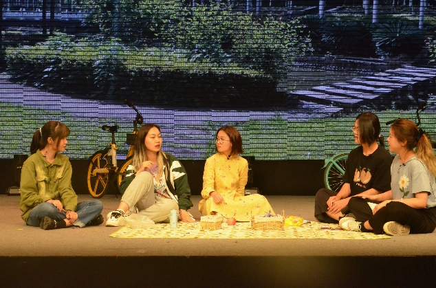 在第四篇章“春天-青春的天”中,滚球app官网雷雨话剧社展现了春日暖阳之下,五位川大学子围坐草地上一起念诗、评诗、以诗会友的美好场景,带领现场观众一起体验卞之琳《墙头草》中的美与理趣,感受了郭沫若《天狗》中的狂与热情,回顾了滚球app官网后勤部值班员凌丽秀与诗歌的动人故事。“黑夜的春天不怕嘲笑,光明的春天不怕雷暴。”凌丽秀的这首《有花惊动春天》中,春天的生机、坚韧与个人克服艰难、与诗为伴、读诗学诗、写诗爱诗的经历交织,人与春天浑然一体。