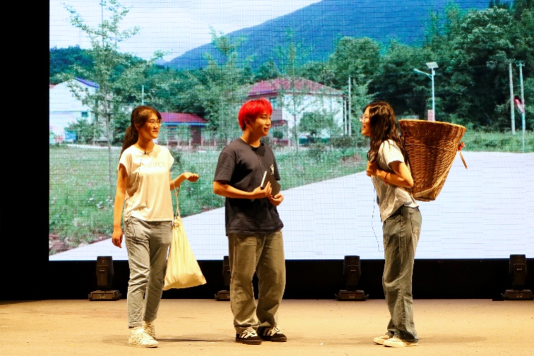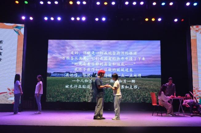 文新学院团委学生会精心演绎了第三篇章“走进春天”。该剧目以国学月系列活动为引,以主人公魏济的支教经历和诗歌创作串联起乡村振兴的工作成果,呈现出一幅生机勃勃、欣欣向荣的春日乡村美景图。“游鱼戏水,少年远游,老父巷口下棋。”诗歌,记录着乡村的种种变化,展现出乡村经济的蓬勃发展和人人安居乐业的舒适生活。舞台上,熟悉的乡音、日常的闲谈、温暖的互动、可爱的友邻,共同构成了宁静美好、饱含希望的乡村生活场景,正如诗中所言,“这就是一切我热爱的缘由”。