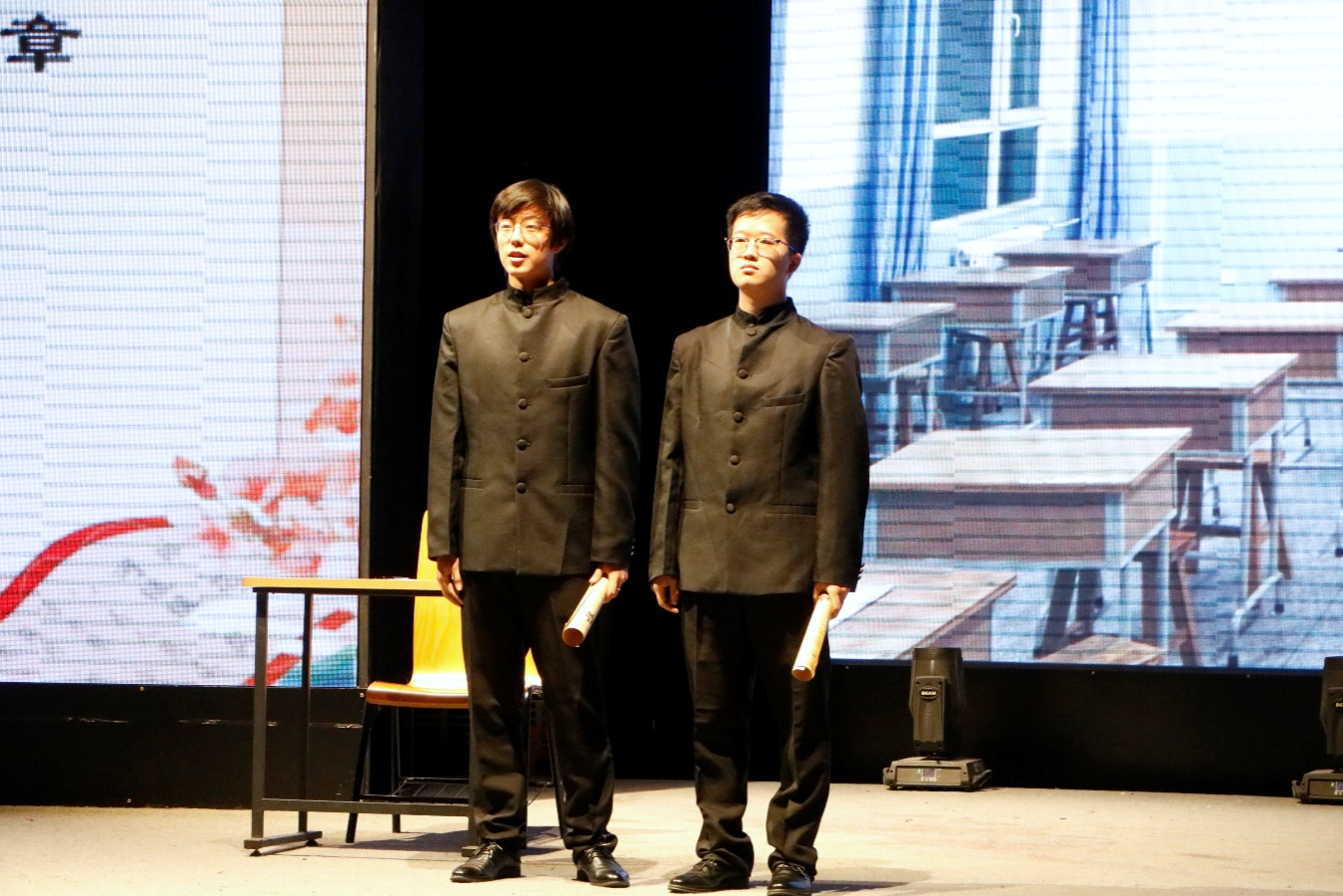 接下来,文新学院研究生会文艺中心带来第二篇章“寻找春天”。舞台上,课堂铃声响起,伴随着悠悠的琴声和深情的诵读,1918年革命先烈李大钊创作的《山中即景》、1938年战士陈辉作于延安的《守住我的战斗的岗位》、1947年诗人苏金伞创作的《在地层下》和这些红色诗篇背后感人至深的故事,在演员们生动的演绎中串联起来。剧目将诗歌与故事结合起来,让观众在诗歌诵读、时空交错与音乐的波澜起伏中,感受诗人们蕴含在诗作中为了革命理想坚贞不屈、勇敢执着的精神力量。