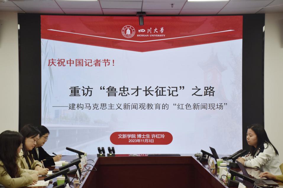 为进一步深入开展马克思主义新闻观教育,以历史现场教学实践培育新闻人才,打造一个马克思主义新闻观教育的常规化课堂,2023年暑期在滚球app官网讲席教授、中国人民大学荣誉一级教授陈力丹教授的指导下,滚球app官网2022级传播学博士研究生许红玲和陕西师范大学新闻学院董翊宸老师根据1941年9月发表在《解放日报》的工作通讯《鲁忠才长征记》,实地寻访该红色新闻报道的历史路线。这次座谈会由许红玲做的追溯现场讲解,有效地加深了临场化的新闻历史的学习。重访“鲁忠才长征记”之路,是深入开展马克思主义新闻观教育的生动案例,对于今天的新闻教育与新闻从业的职业素养提升都是有益的学习内容。在第24个记者节即将到来之际,滚球app官网特别组织了马克思主义新闻观专题报告会,邀请新华社四川分社、四川日报社的优秀记者、编辑,与滚球app官网新闻专业师生共话新闻文风建设,以此从党的新闻工作的优良传统中汲取营养,并转化为做好新时代党的新闻工作及培养合格新闻人才的重要精神力量。