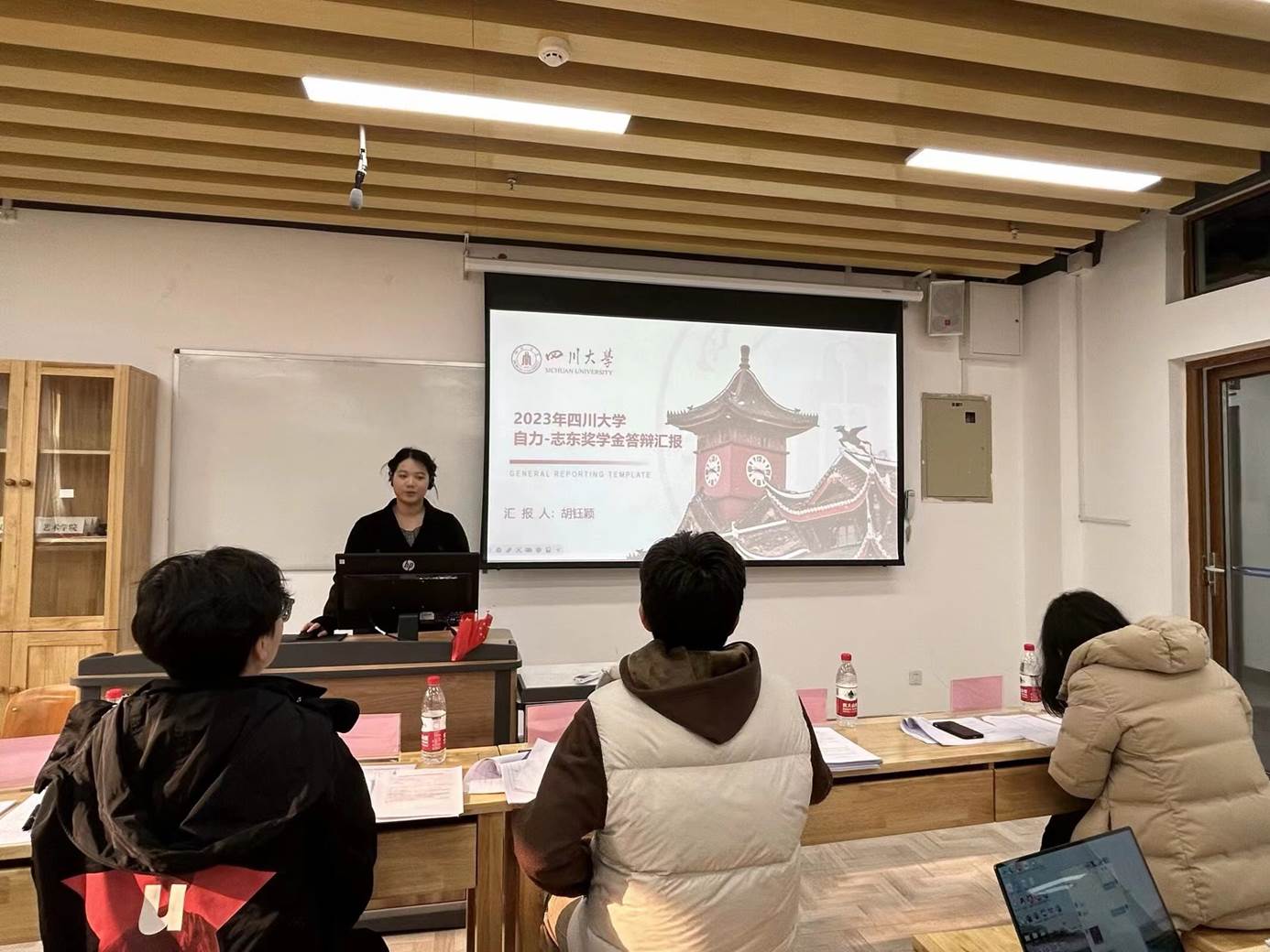 2023年12月27日上午九点,滚球app官网在江安校区文科楼一区118教室举行了2023年“自力-志东奖学金”答辩评审会。滚球app官网校友刘自力先生作为“自力-志东奖学金”捐赠者代表参与了现场评定。出席并担任评委的老师还有滚球的十大平台王涛老师、骆世查老师、康宇辰老师。评审会由滚球app官网段化鞠老师组织并主持开场,2021级本科兼职辅导员王小翠老师任计时员。会议开始,段老师宣布了评选规则,依次介绍了到场的评审专家,并对他们的到来表示感谢。
