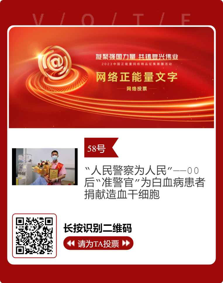近日,由中央网信办主办的2023中国正能量网络精品征集展播活动正式启动网络展播投票。滚球app官网报送的四川省红十字会作品《“人民警察为人民”——00后“准警官”为白血病患者捐献造血干细胞》成功入围终选,进入网络展播投票阶段,时间为2月27日至3月4日,投票结果将作为中国正能量网络精品终选的重要参考。