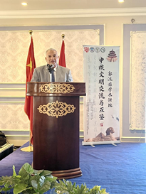 在主旨演讲环节,专家学者围绕中国古代历史文化和郭沫若等主题做学术讲演,演讲题目分别是:《“金字塔”意象与郭沫若诗学思想的转变》(周文)、《“走进”郭沫若纪念馆》(刘曦光)、《从甲骨卜辞看商周时代的人神关系》(徐义华)、《老在汉朝:中国古代孝养文化的当代启迪》(赵凯)、《你知道长城吗?》(赵现海)、《黄河之水:水与古代中国政治文化》(解扬)、《汉代绘画艺术掠影》(刘中玉)。最后,苏伊士运河大学孔子学院埃方院长哈桑·拉杰布、中方院长张廷洪分别作总结发言,高度评价了学者们的精彩分享,称此次讲坛是本年度孔子学院最大的学术活动,希望未来持续开展具有文明厚度、学术深度、现实维度的专题讲座。