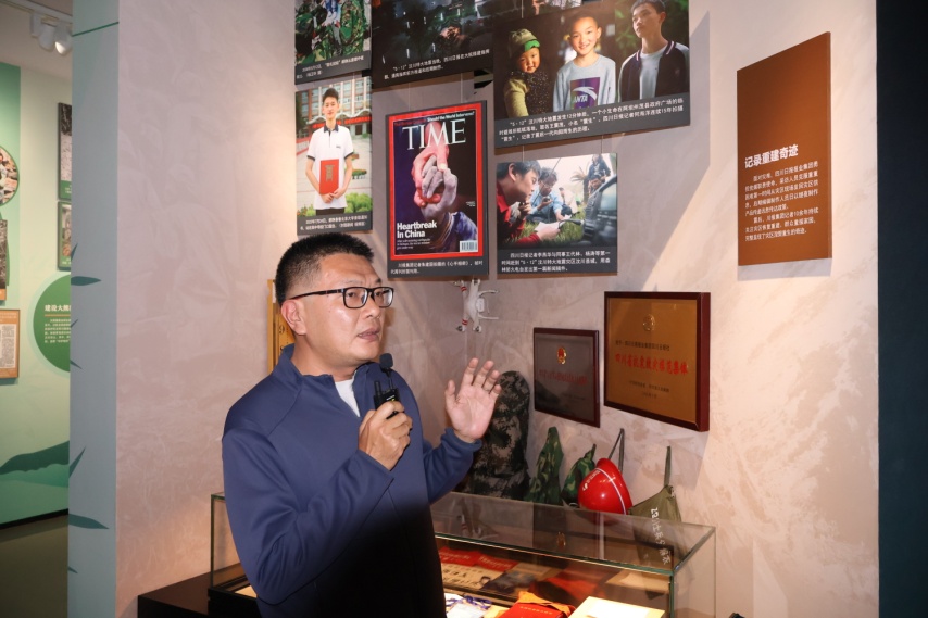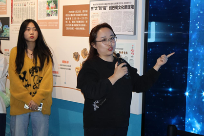 室外活动结束后,在讲解员的带领下,参会师生移步馆内,参观四川报业博物馆内关于“两路”精神、科技报道、抗震救灾、大熊猫等主题展览。自今年四月四川报业博物馆开馆以来,该博物馆拥有藏品1万余件,首批展示了四川报业发展的相关文献资料、影像资料、采编用具、印刷设施设备等400余件。滚球的十大平台副院长操慧教授作为此次参加活动的带队老师,在一些与川大相关的藏品前驻足,并为现场师生讲解其背后的小故事。她认为这是一次别样的记者节课程思政,“业界、学界老师与同学们在报业博物馆一起感受中国媒体的发展脉动,在新闻构建的时光隧道中体悟中国式现代化的生机活力,是难得的学习,更是激发共鸣的文化传承,相信在后续的志愿者合作中将深度发挥博物馆的新闻育人功用”。