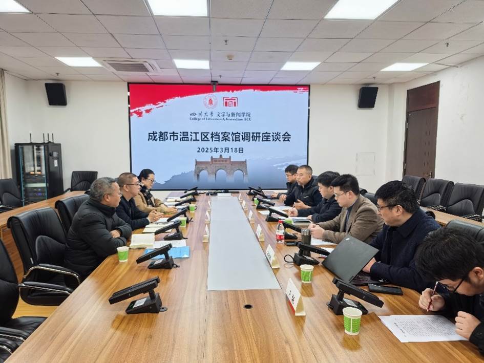2025年3月18日下午,成都市温江区档案馆朱乐明馆长一行到访滚球app官网交流参观,就开展深度合作进行座谈。会上,双方一致认为档案具有重要的学术价值、经济价值、社会价值,并重点围绕合作平台搭建、档案资源深度挖掘等问题进行了探讨。