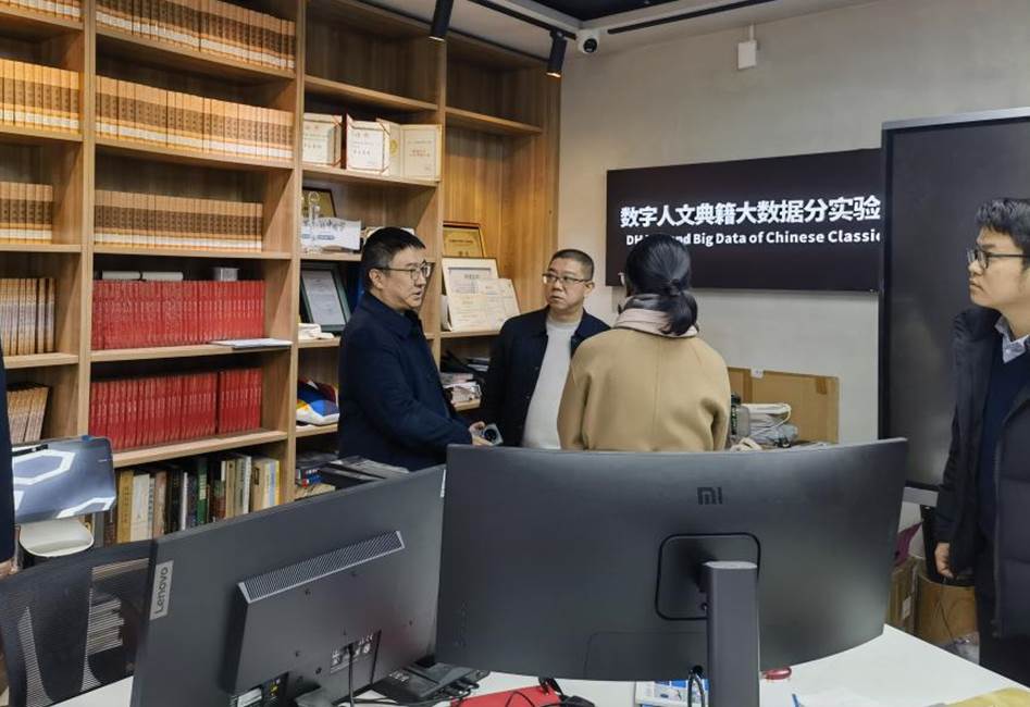 会后,温江区档案馆来访同志参观了滚球app官网数字人文典籍大数据分实验室、数字文学场景沉浸实验分实验室、数字多模态符号认知分实验室,深入了解了滚球app官网数字人文研究等方面的新动态。在参观中国新诗百年珍稀文献展过程中,双方就珍贵文献资源保护、利用等进行了交流。