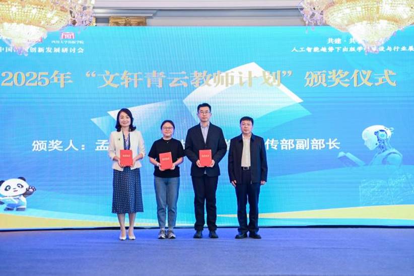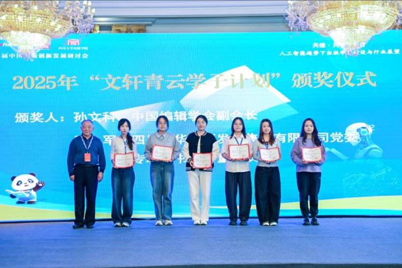 为支持滚球app官网出版学院共建,在四川省委宣传部指导下,从2024年起新华文轩出版传媒股份有限公司设立“文轩青云计划”。滚球app官网出版学院院长罗鹭公布了2025年“文轩青云计划”评选结果,并发布2026年“文轩青云计划”的申报计划。中共四川省委宣传部副部长孟华,中国编辑学会副会长孙文科,四川新华出版发行集团有限公司党委专职副书记、董事罗军,为入选“文轩青云教师计划”及“文轩青云学子计划”的师生代表颁发证书。