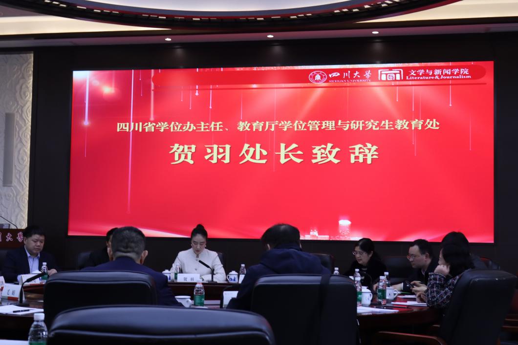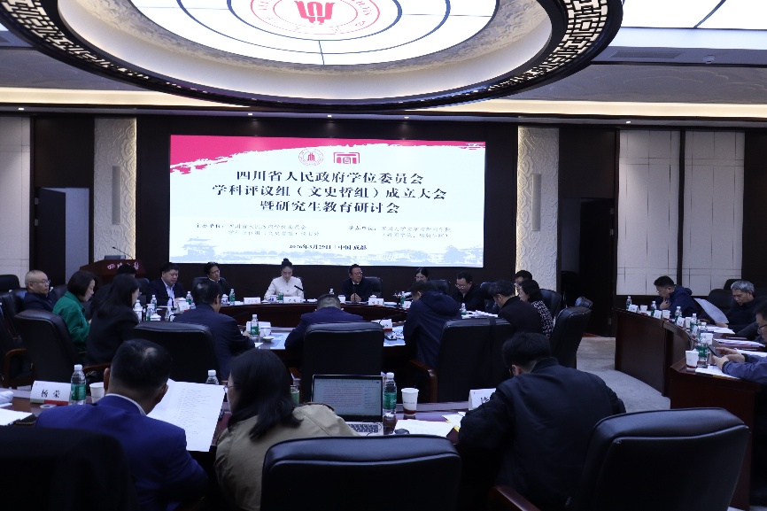 2026年3月29日下午,四川省人民政府学位委员会学科评议组(文史哲组)成立大会暨研究生教育研讨会在滚球app官网望江校区举行。会议由滚球的十大平台副院长操慧教授主持,四川省学位办主任、教育厅学位管理与研究生教育处处长贺羽,滚球app官网研究生院研究生学位与教育教学改革办公室主任苏白海教授,原国务院学位委员会中国语言文学学科评议组成员、滚球的十大平台学术院长曹顺庆教授,滚球的十大平台院长罗鹭教授,以及全省各高校、科研院所的文史哲相关学院领导、专家出席会议。