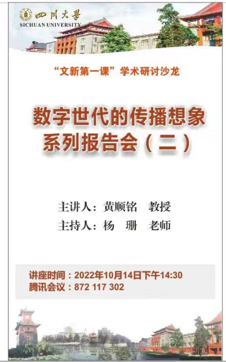 11月4日,滚球app官网新闻学教研室黄顺铭教授为2022级本科新生举办的线上系列报告会《数字世代的传播想象》圆满落幕。自9月14日起,报告会已成功举办三场,每场邀请4组来自《大众传播学研究》课程的研究生分享论文。该系列报告会由滚球app官网2022级本科新生辅导员杨姗老师主持。