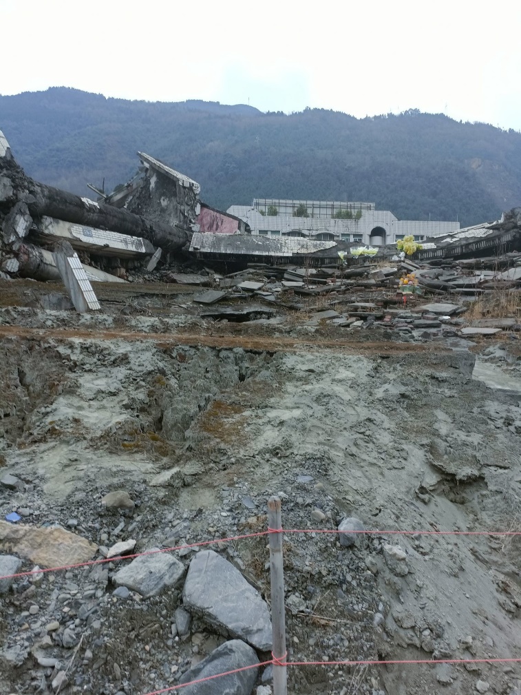 2月18日上午,调研队来到了5.12特大地震另一个受灾严重的地区——四川省绵阳市北川羌族自治县曲山镇。在2008年的那场特大地震中,北川受灾严重,政府所在地的曲山镇几乎被夷为平地,后在老县城23公里外另址重建新城。走进北川老县城遗址,入目是倒塌的山石、撕裂的房屋与遍布的瓦砾废墟,团队成员行走其间,听竖立的石碑无言讲述当时的历史,更加深刻地认识到防灾减灾于国于民的重要意义。
