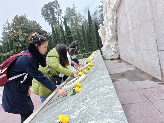 团队成员为遇难同胞献上鲜花