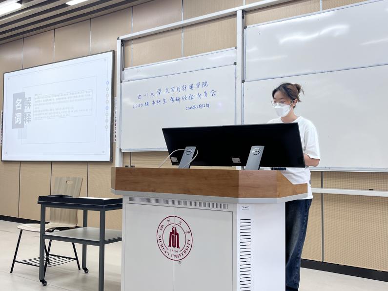 在新闻传播学专场中,王奇琦同学首先介绍了华东师范大学的新闻学硕士专业情况、历年报考数据、考研参考书目和考试科目等基本情况,紧接着重点讲解了如何利用学院真题整理专题学习的内容,强调了专题学习对于形成知识谱系的重要性,最后鼓励准备考研的同学们抛开焦虑、埋头苦干,定能收获令自己满意的结果。向欣然同学分析了专业课和公共课的学习方法,包括专业课考试中的名词解释、论述、消息评论等题型的复习技巧以及公共课考试中的英语和政治的积累方法,还介绍了复旦大学学术硕士研究生的招生情况和参考书目。杨义珑同学从个人简介、专业介绍、学习规划和经验教训四个方面入手,在专业复习上结合近几年的真题为同学们解析了做题方法和技巧,并且以时间轴的方式呈现了英语和政治学习的规划。陈思梦同学从考情分析、具体经验和自身经历出发,详细地解析了考取本学院专业的具体情况,鼓励同学们保持信心、积极尝试。周萱同学则以个人背景、考情分析、复习方法为脉络,结合考试热点、时间安排和记忆方法,为同学们提供了行之有效的复习思路。